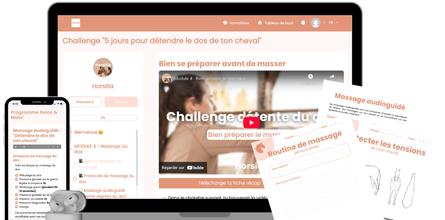 C'est aussi pour moi une façon de te faire découvrir mon univers et un extrait de mon Programme Relax & Mass' qui te permet d'apprendre à masser ton cheval en autonomie.
