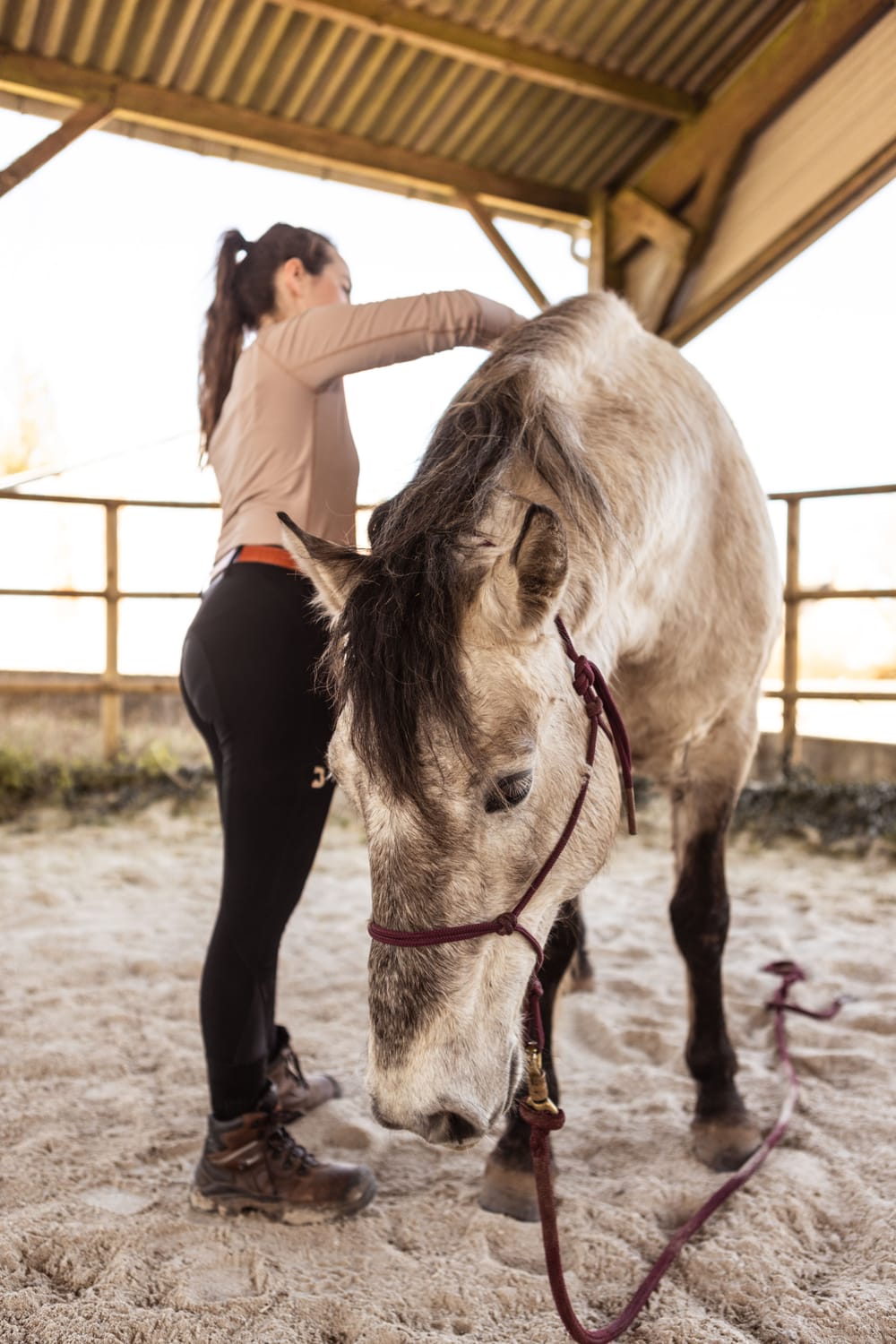Aujourdâhui, avec Horsilia, jâaide les propriĂ©taires Ă apprendre Ă masser leurs chevaux eux-mĂȘmes.